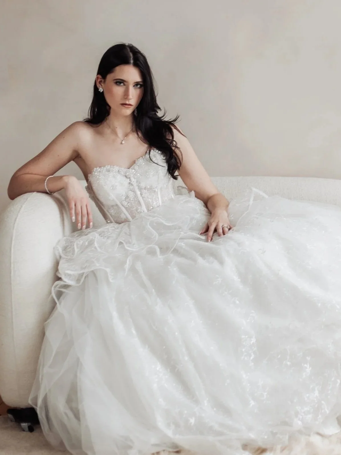 Rooted in the spirit of a maison, each design is intentional and considered. Corsetry and tailoring provide form, while romantic details and transformable elements allow the gowns to evolve throughout the day. New England Maison presents bridal couture shaped by environment—where history lingers and elegance unfolds without excess.