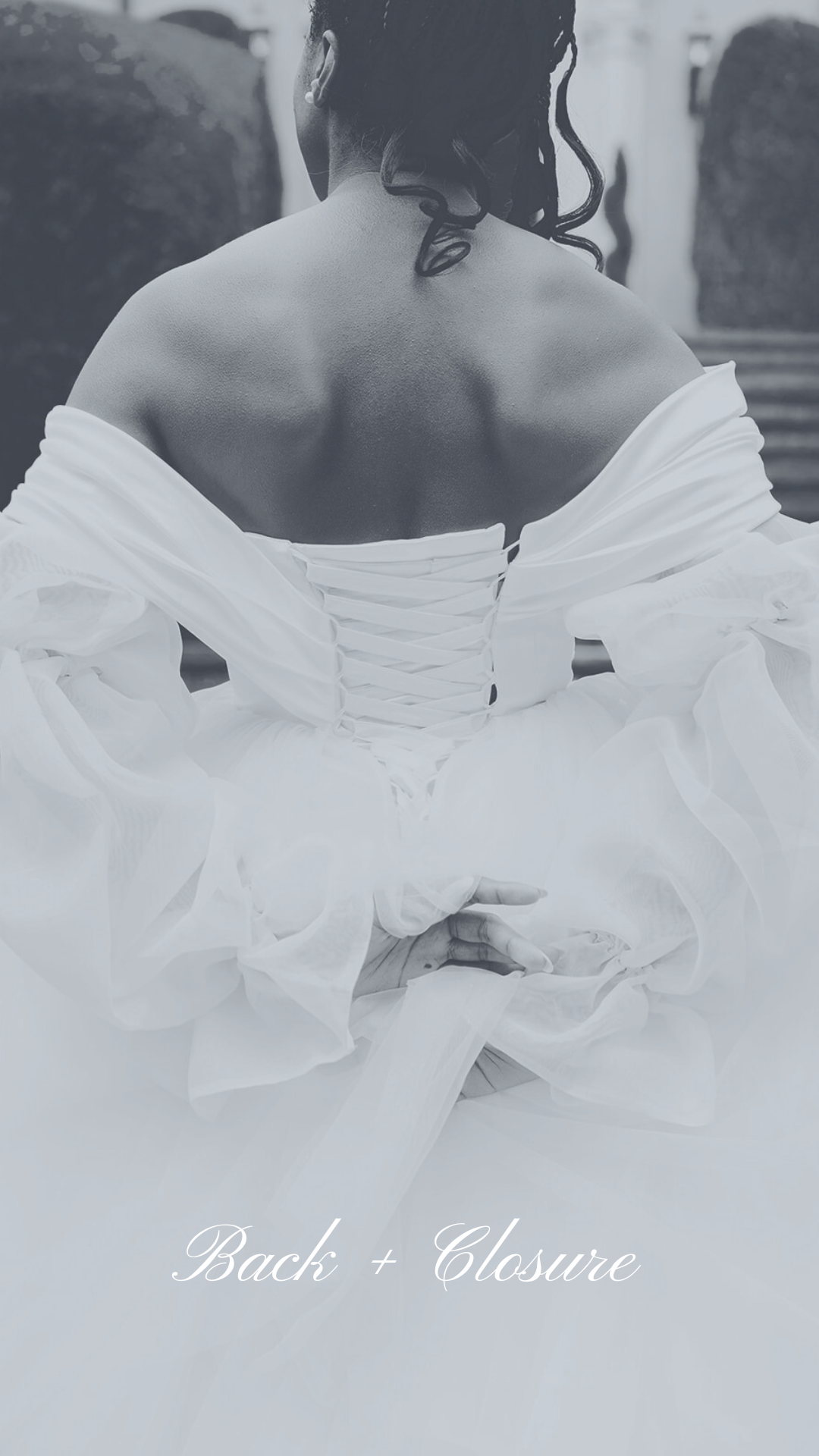The back of a wedding dress often leaves the final impression. From buttoned details to open backs or structured finishes, this element balances the front of the gown and contributes to its overall elegance.